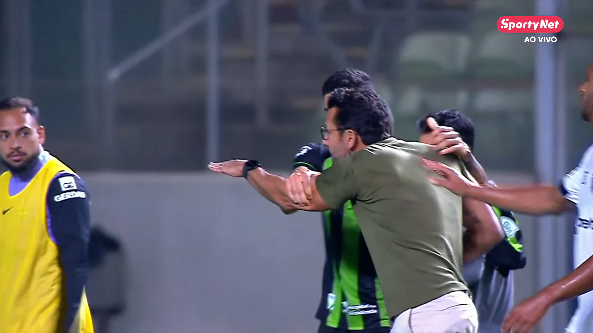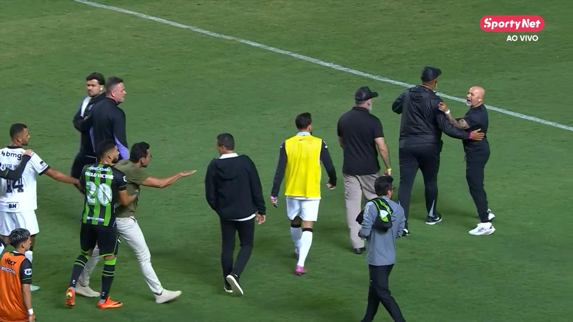 Jorge Sampaoli and Alberto Valentim had a disagreement and had to be restrained by the players during the first half and as they headed to the locker room at halftime.